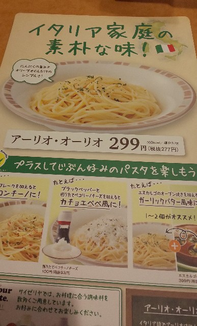 トマトソース系に比べるとペペロンチーノ系は割高感あるよな