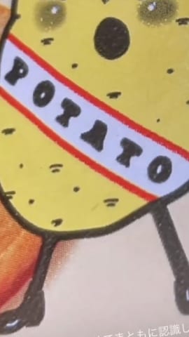一方で、本来の口が鼻、タスキがニイッと横に大きく開いた斜めに伸びる口(POTATOの文字は歯の区切り線)に見える人は・・・先入観でその見え方になってしまった人か変態か