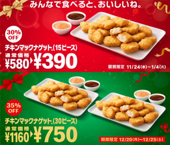 クリスマスは倍ビッグマック3つ、ナゲット60ピース、ポテトL4個で一人パーティーするでー殺
