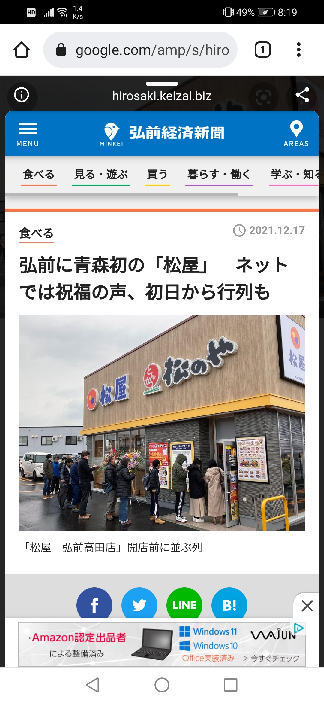 青森はすき家帝国だったのがついに松屋の楔打ち込みにきたか