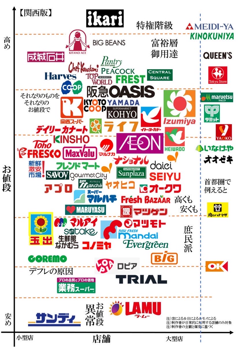 ワイのとこスーパー多くて選択肢いっぱいあるけど自転車圏内で業スー、サンディ、ラムーいけるから