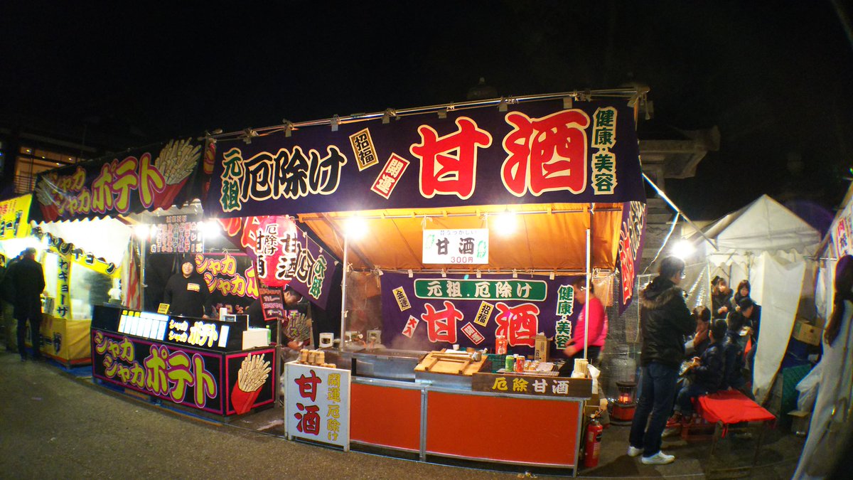 初詣の出店でつい買ってしまうもの 甘酒、牛串、大学芋 相互の相性は最悪なんだよな