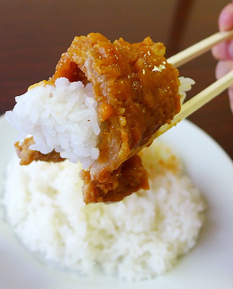 茹でたうどんの上にカツのっけてこんな感じの甘いソース掛かってる
