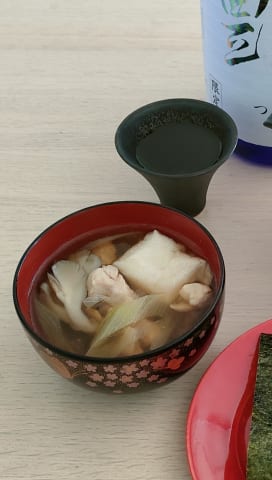 今自分で作るのは関東風の醤油ベースのお吸い物に菜っ葉と鶏肉とカマボコ