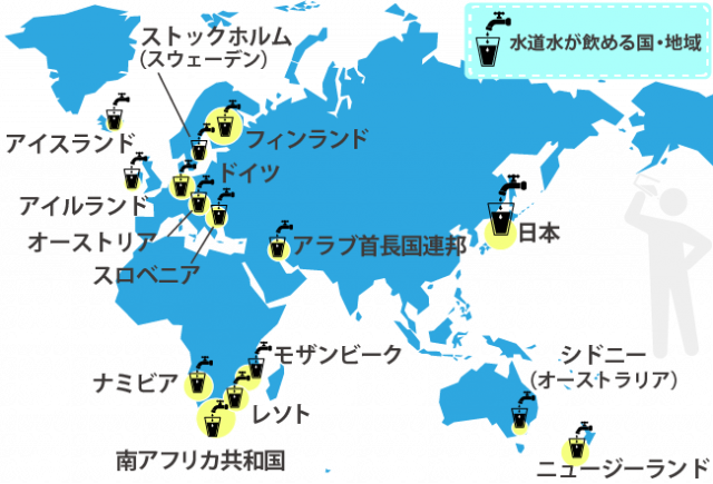 ホテルのフロントでバイトしてたけど、チェックインの時に外国人に水道水飲めますよ~って説明したらみんな「オー」言うてたからほんま珍しいんやなって