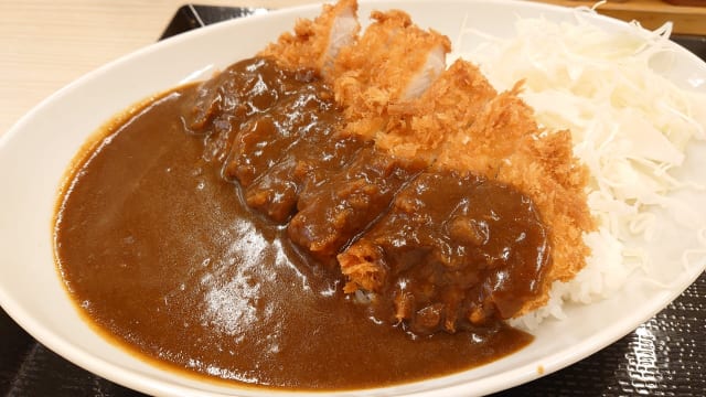 日本式ディープフライのパン粉の粗いカツと小麦粉の多いドロっとしたカレーソースはまるで合わない。