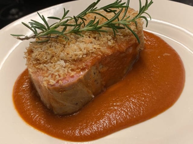 意識高い系カツカレー 低温調理することで肉厚でも柔らかくジューシー 油を使わずにカリっと焼き上げたパン粉を肉にまぶしてるので 普通のカツよりもあっさりといただけます