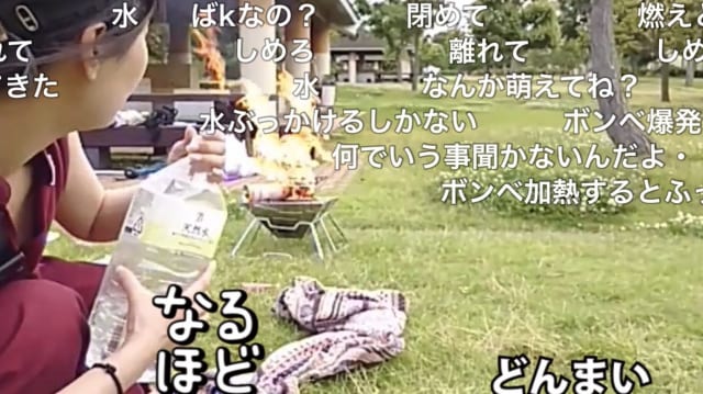 コンロに水掛けたら消えるから
