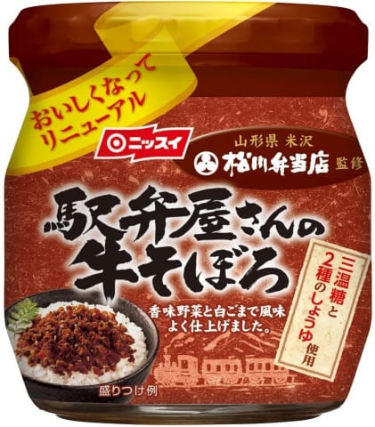 鶏のから揚げが入り、家庭的な味だと幅広い世代に人気の商品です。