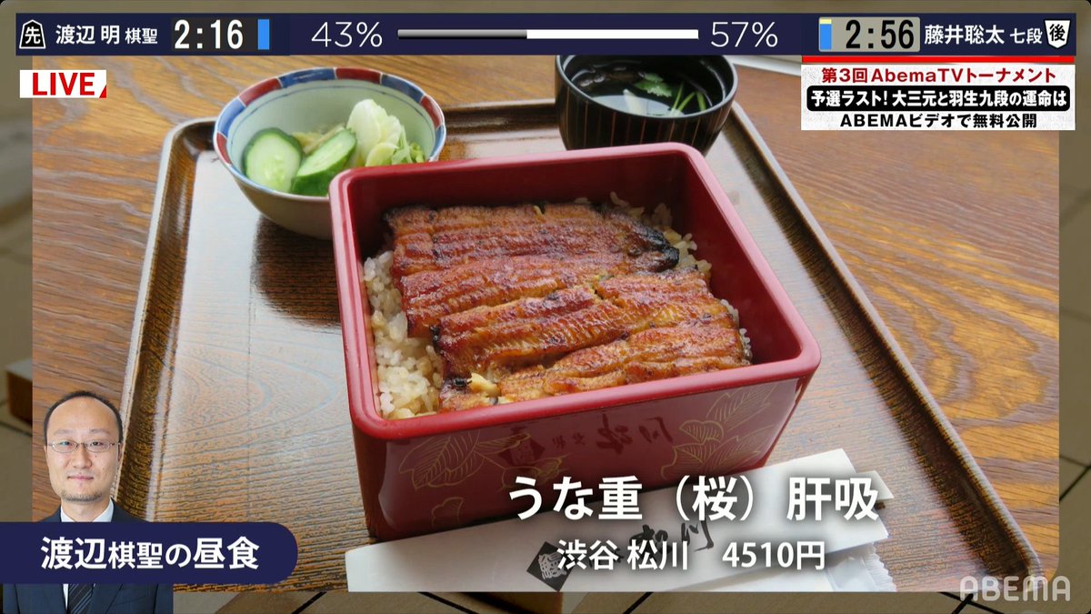???「対局時のごはんはやっぱりうな重ですね すぐに食べることができて栄養になるのも早い」