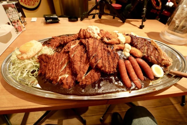 全部あわせて1.5kgならいけるけど、ライスだけで2kgならトッピングとルーあわせて3kgくらい? 無理無理