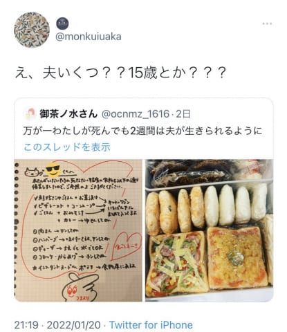 写真と激務の旦那の入院中の食事作ったよくらいのツイートなら別に何も思わんけど
