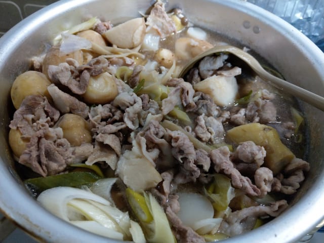 納豆汁は、ひきわり納豆をさらに細かくした納豆に味噌を混ぜ込んだもので、豆腐や油揚げ芋がらを入れたスープに溶かすんだよ