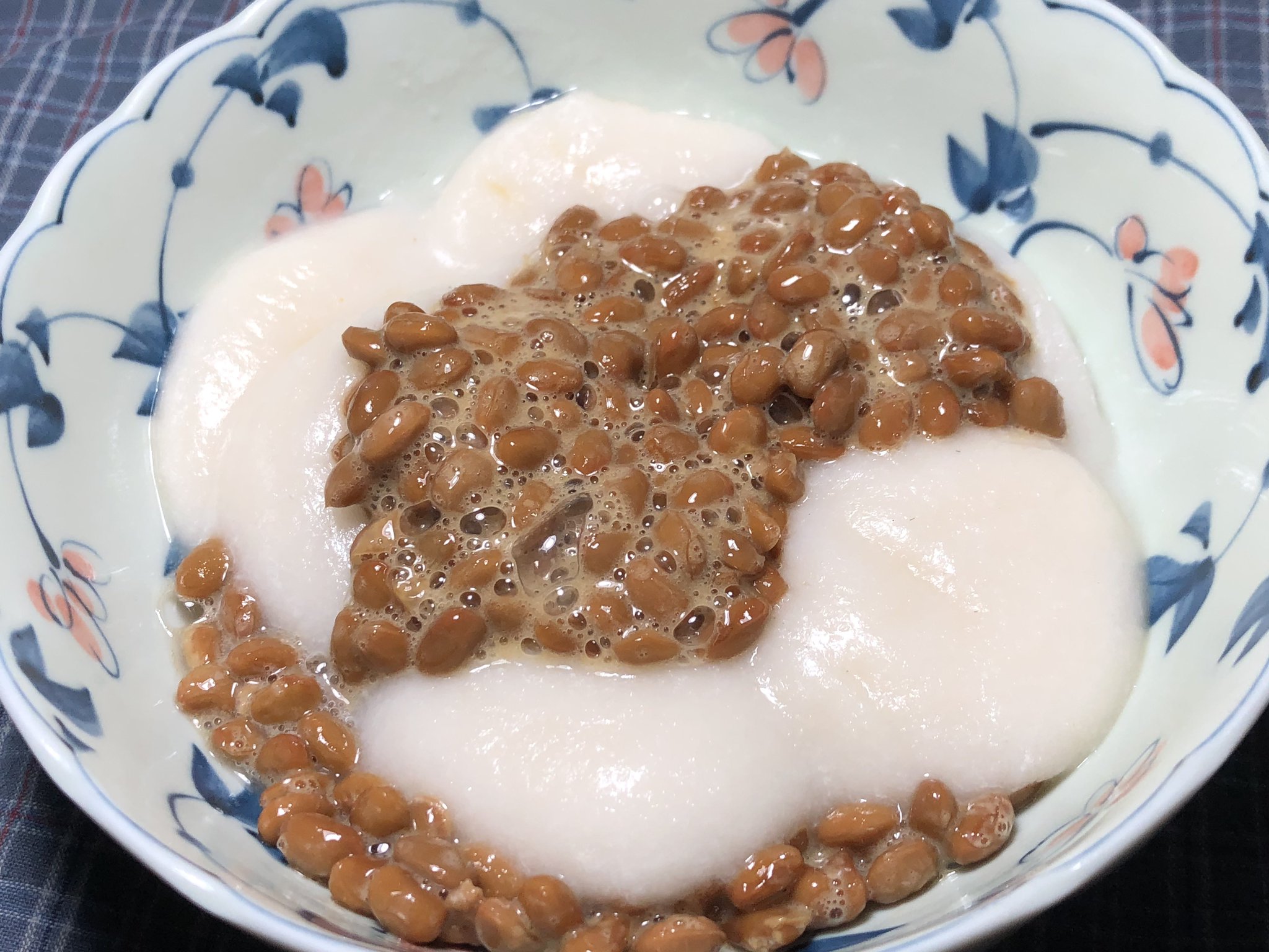 餅に納豆乗ってるだけなんだけど何かグロいな
