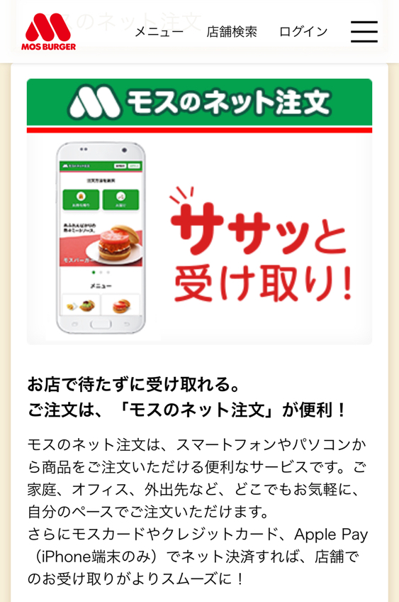 モスバーガーのネット注文ってもう店頭決済受け付けてないんやろ