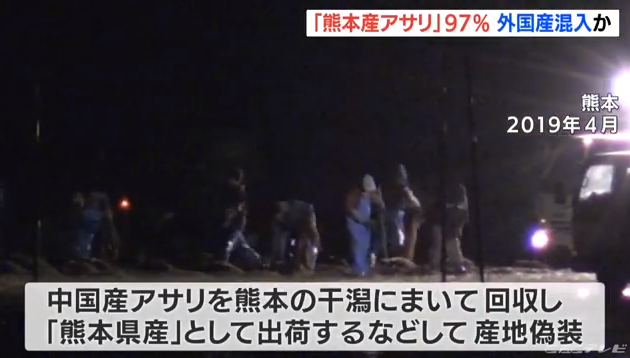 2019年には佐賀でも韓国、支那産を「熊本産」アサリと偽装して販売してた