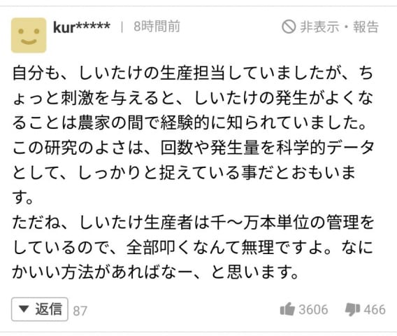まだ仕組みは不明やけど昔から椎茸栽培してる人には有名らしいで