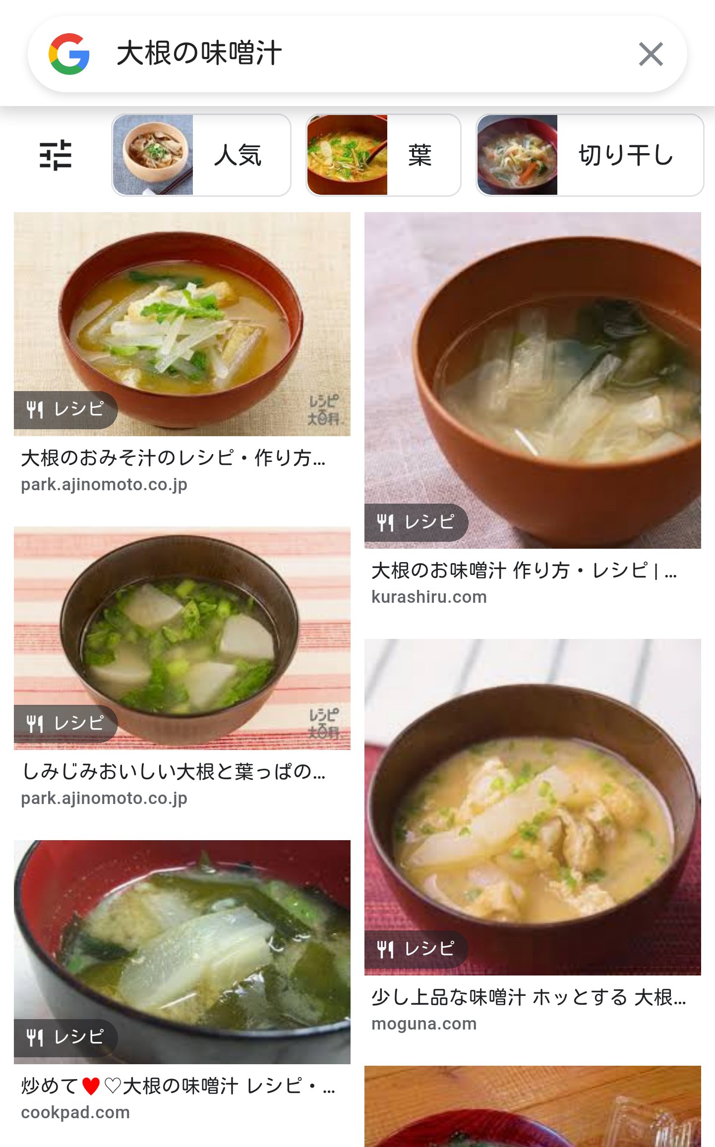 「お大根のお味噌汁」の検索画像でなんかワロタ