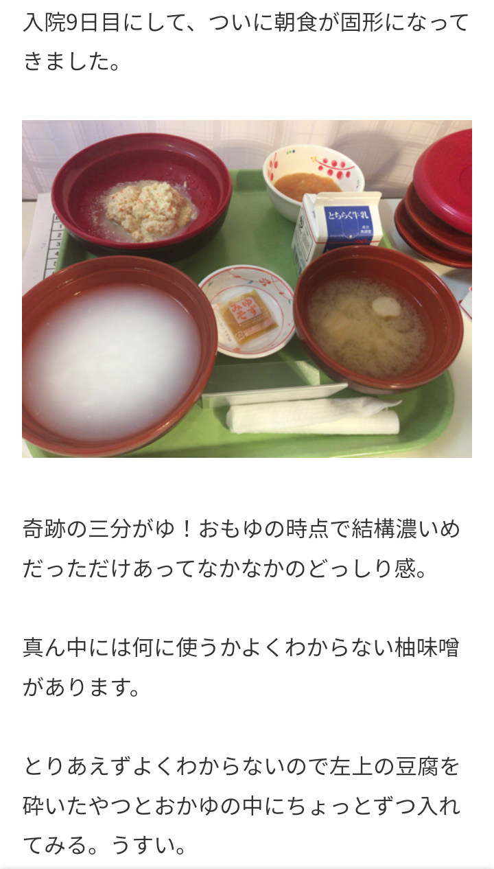 ワイも盲腸手術翌日はこんなんやったわ おかずはまあまあ美味しいけど10倍粥がクソ不味い