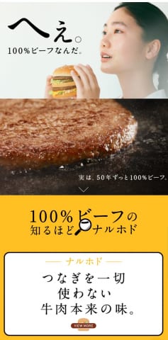 マクドナルド「へぇ。100%ビーフなんだ。」