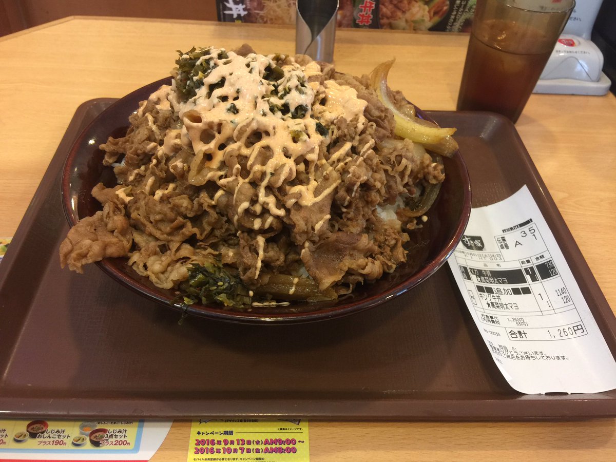 高菜明太マヨ牛丼ってすき家にあるけど食ったことないわ