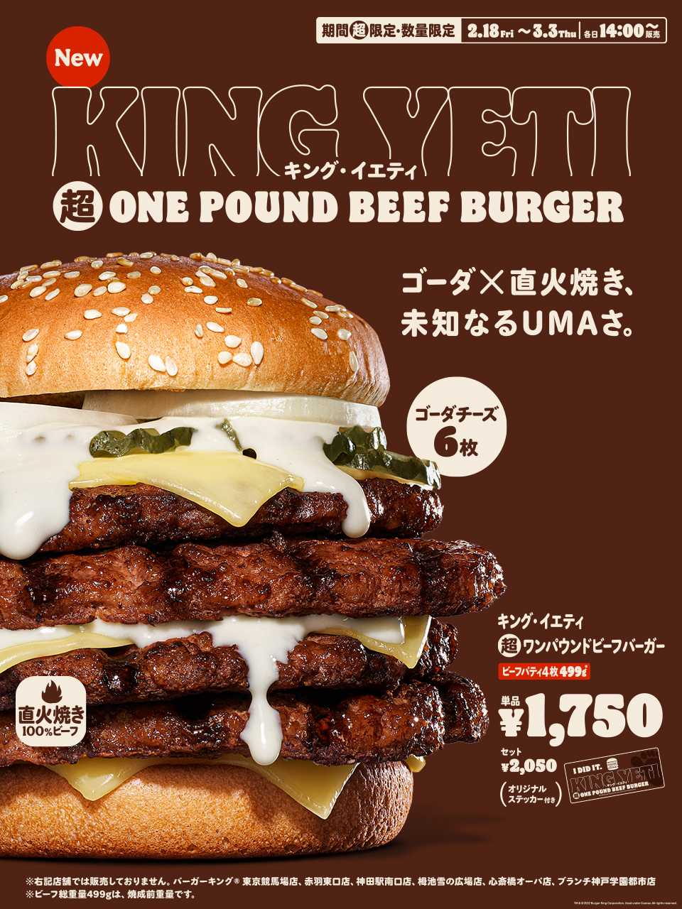 > 「キング・イエティ超ワンパウンドビーフバーガー」新発売!