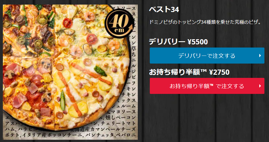 ドミノはどれだけ豪華でも2300円以下って決めてる。楽天のポイントでしか買わないし。