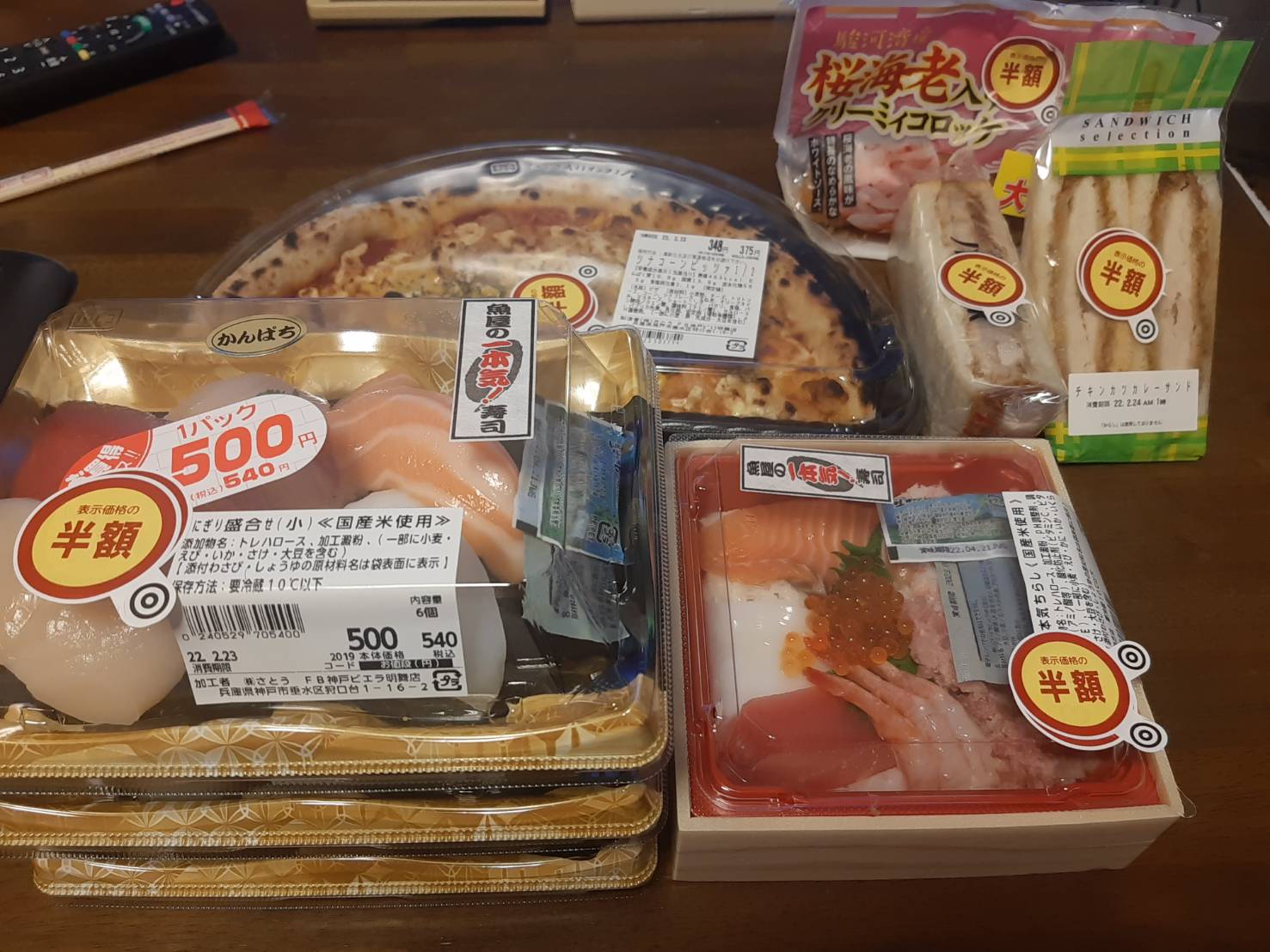 目の前でそれらやられたから、半額シール貼られる前に横取りしてやったわ。