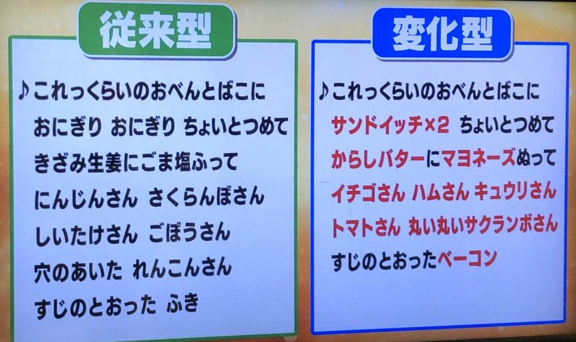 そういえば前に歌詞の「おにぎりおにぎりちょいと詰めて」は