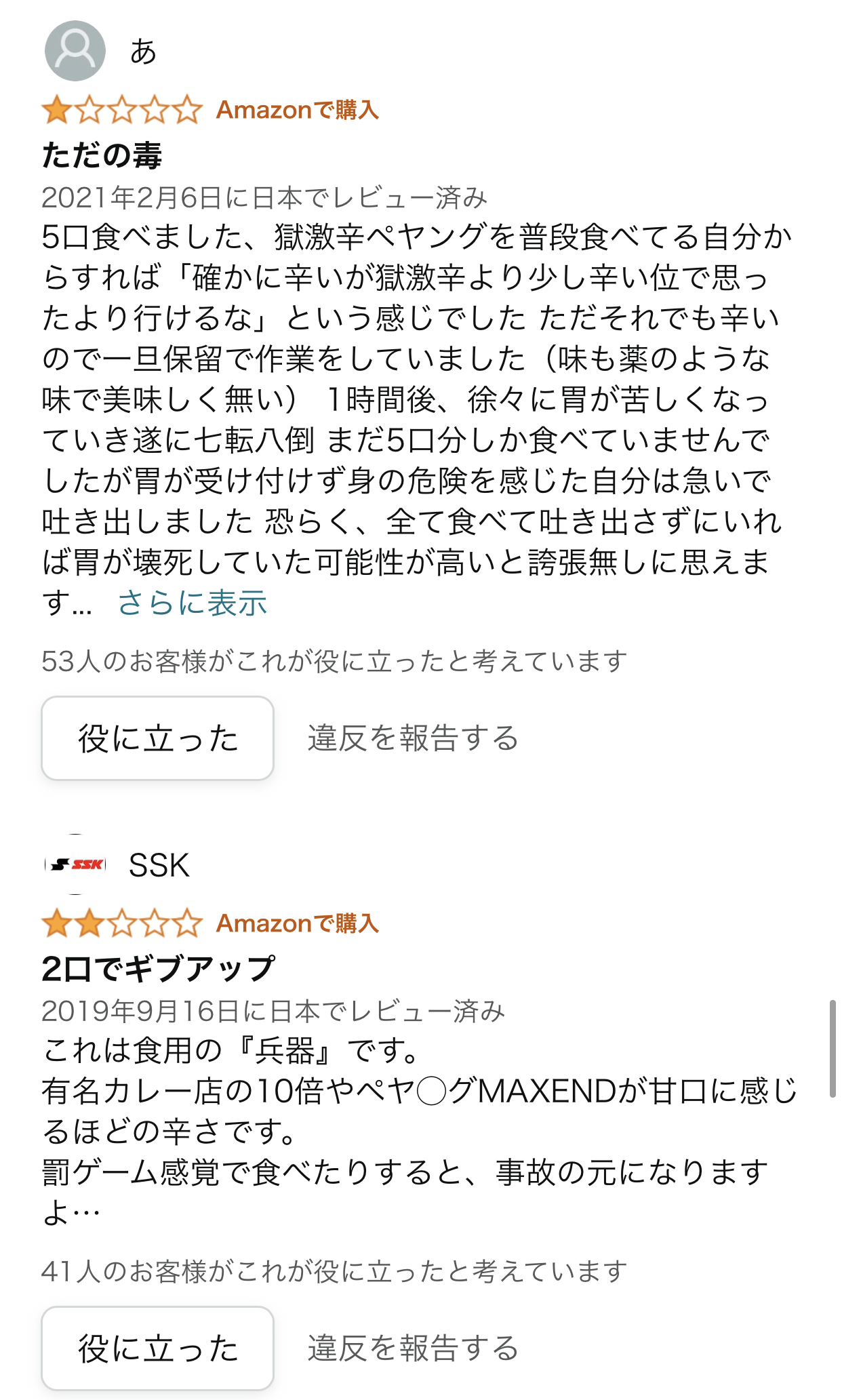 激辛カレーとかはクソ美味かったのにこれはまじで死ぬで