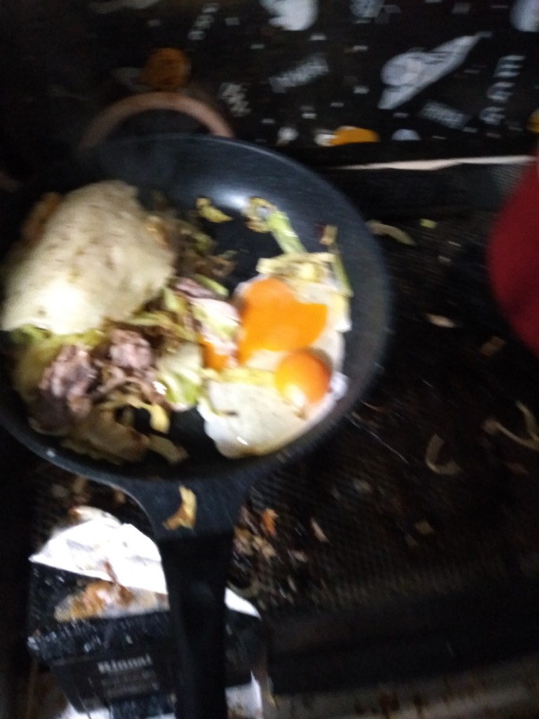 食べる時はキャベツから出た水分でしっとりしてるしソバや卵もあるからバラバラにはならなね