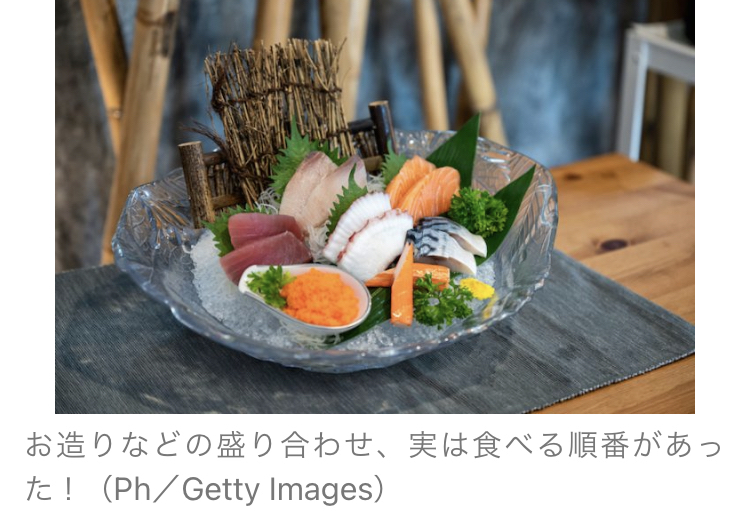 盛り合わせというと、お刺身や天ぷらなどが思い浮かびますが、好きなものから食べていませんか? 実は盛り合わせにも食べ順のマナーがあるそうです。