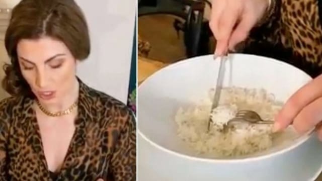 フォークの背に乗った米をどうやって口に入れるのかが謎