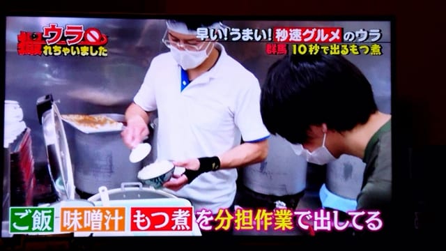 ごはん、もつ煮込みなど盛り付け全て分業で10秒で出すことにこだわってるんやで😆