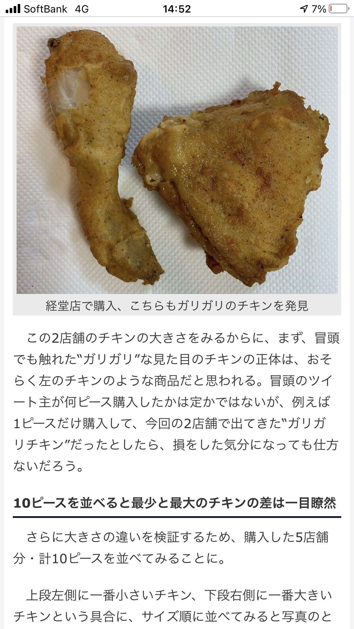 ケンチキは元々そうだから文句言ってもしゃーない。