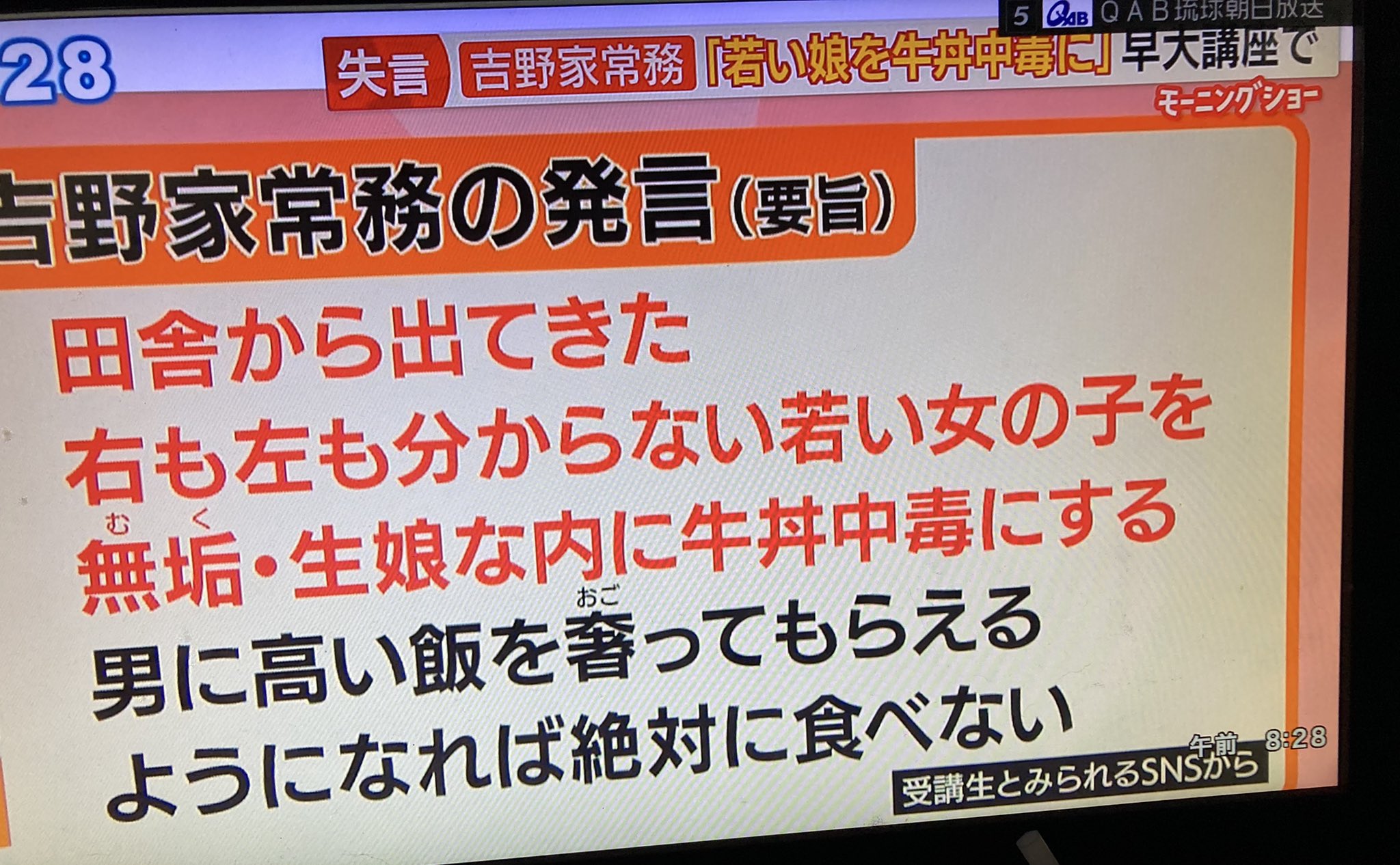 生娘シャブ漬けってワーディングがチンピラだし女性蔑視、地方出身者蔑視でかつ自社商品蔑視、吉野家のリピーターや社員を貶める凄え発言。