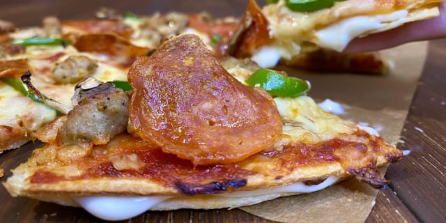チェーンのピザ屋で頼むときはイタリアン?の薄い生地を選ぶ。 生地の厚いのだと生地だけでお腹が膨れるから