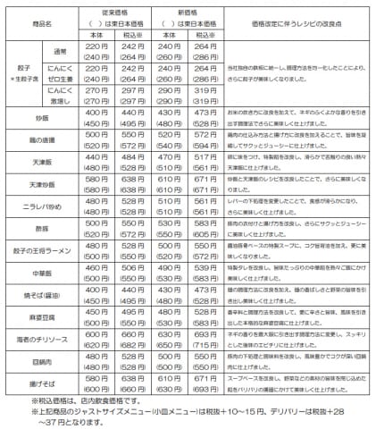 「餃子の王将」を運営する王将フードサービスは、5月14日より、一部商品の店頭価格を改定する。