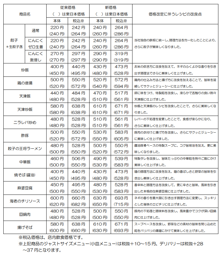 王将に限らず全てのものが5~10%くらいの値上げされてるって感じだから
