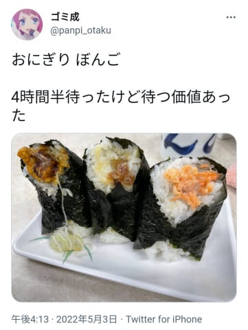 おにぎりなんて手軽に出来るものに五時間って、よっぽど回転率悪いのか