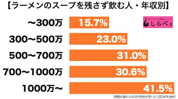 > ラーメンのスープは高収入の人ほど飲み干すらしい