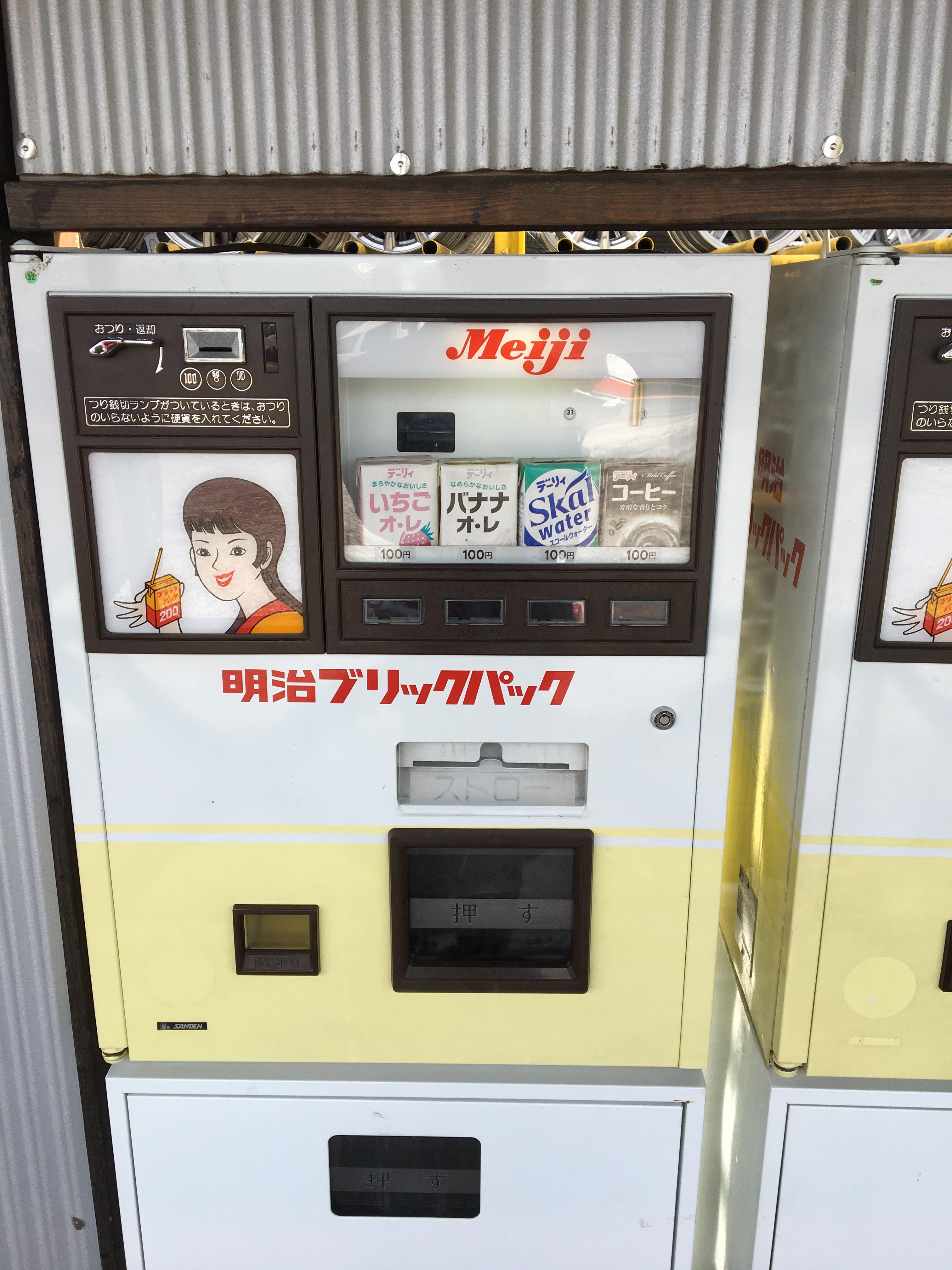 最新式の自販機から瓶のコカコーラやリボンシトロンが出てきたり、
