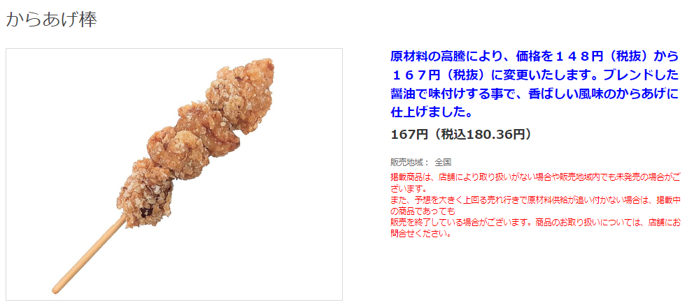 これじゃあ唐揚げ棒じゃなくて値上げ棒じゃねーか