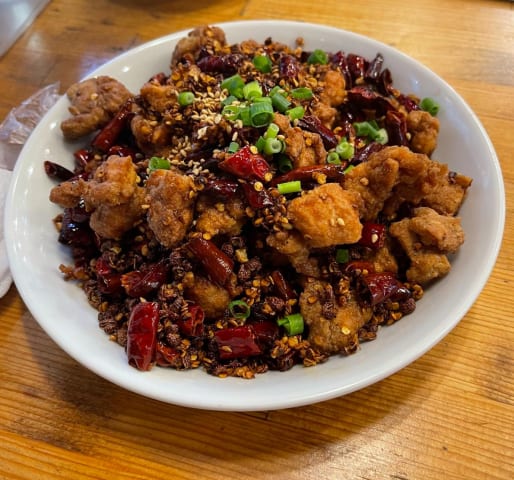 から揚げを唐辛子とか花椒と炒めたやつやで