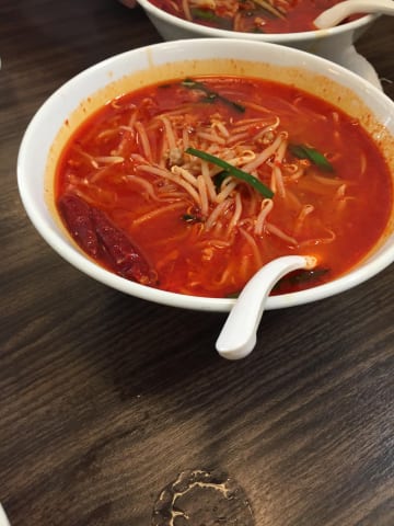 サンラーフンとかいうの頼んだら酸っぱ辛いスープにマロニー入れてるだけのやつやった