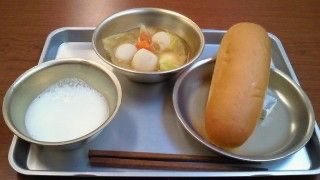 不味いコッペパンとマーガリンと牛乳+日替わりの汁物