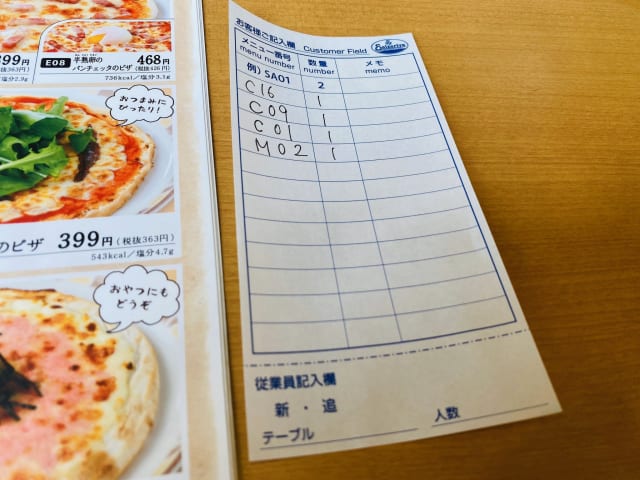 サイゼ安いから複数注文する客が多いし紙に書いたほうが早いしわかりやすいよな