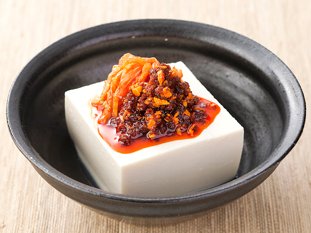 豆腐にかけてキムチも載せる