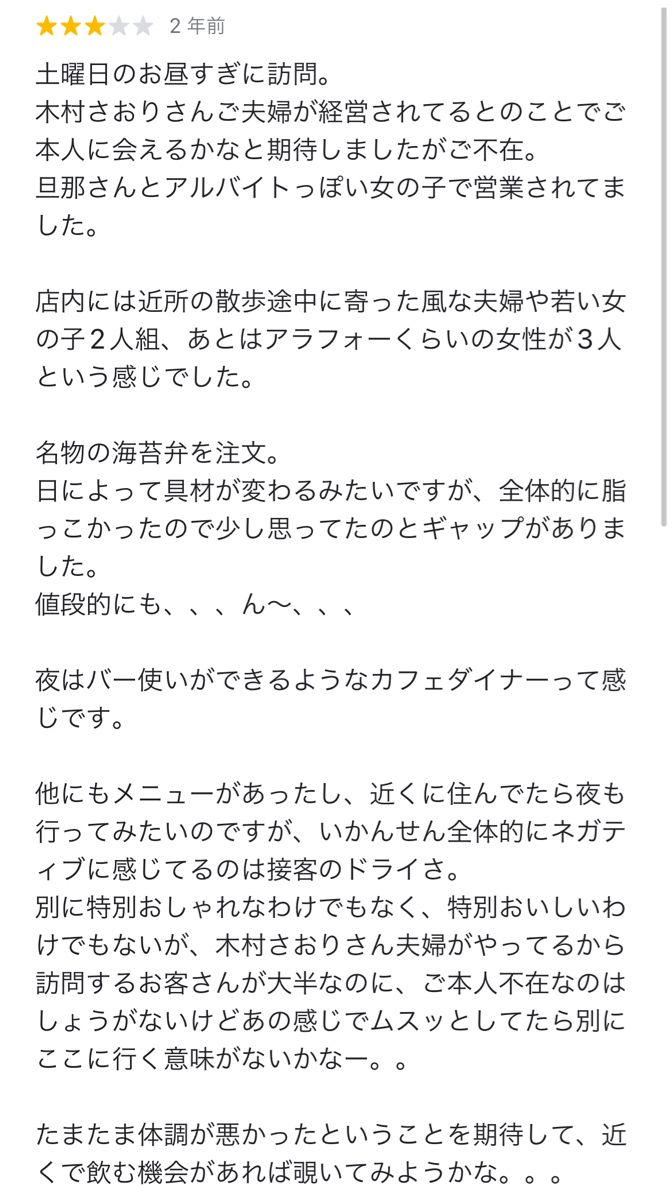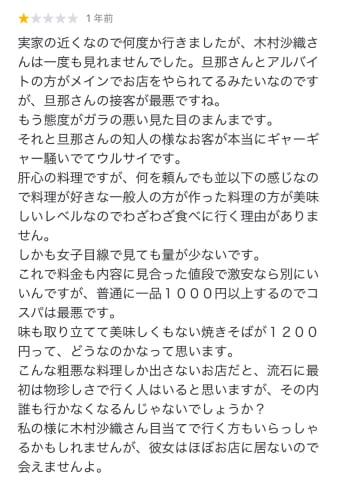 旦那が厨房やって木村沙織が接客したら星4.5ぐらいになりそう