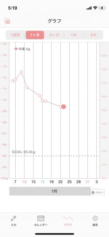 5日で1kg落ちる計算だから、数字通りっちゃ数字通りか。